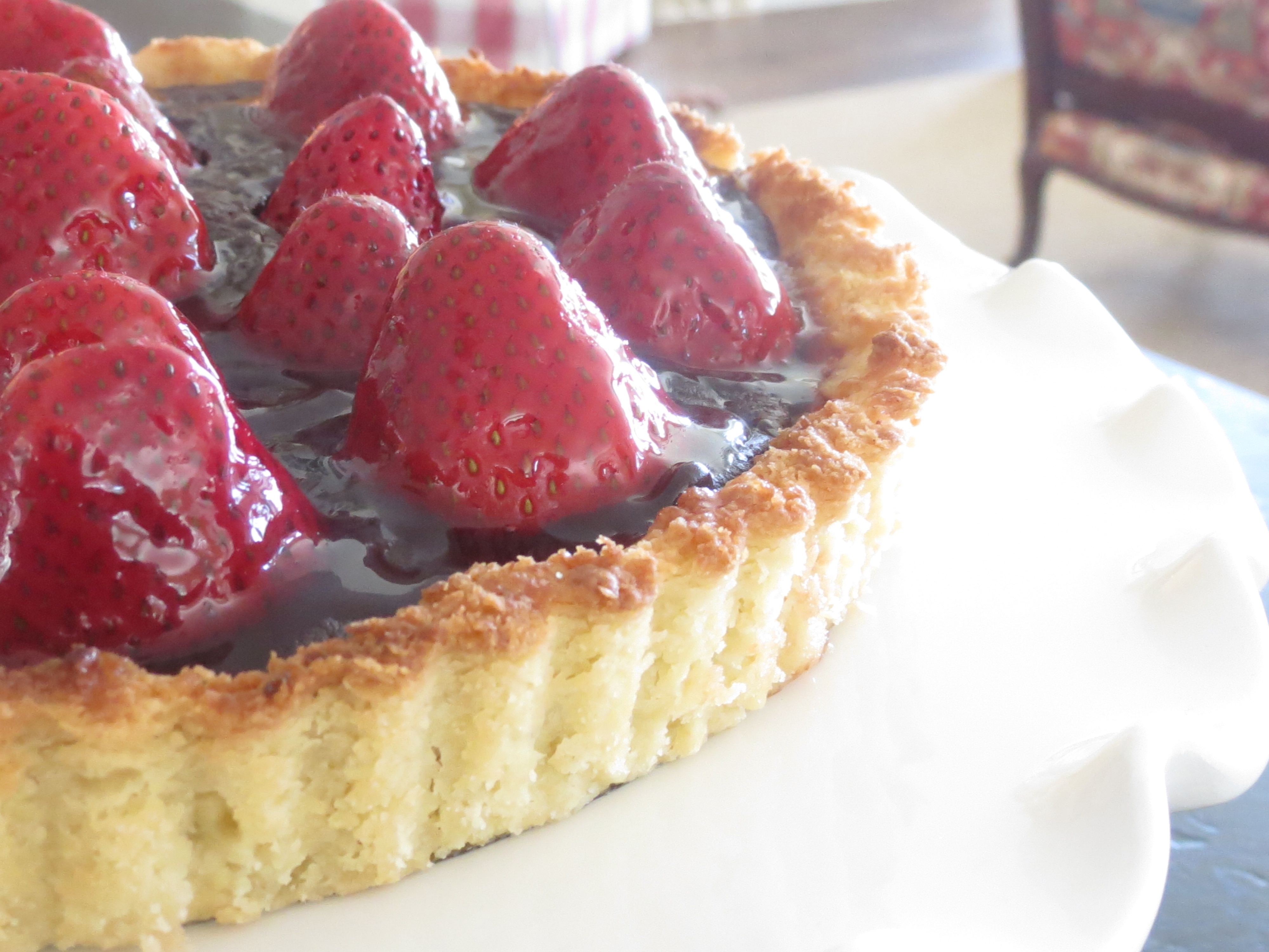 After finishing tart and chilling for a bit, make Red Currant Glaze and brush on top of strawberries…